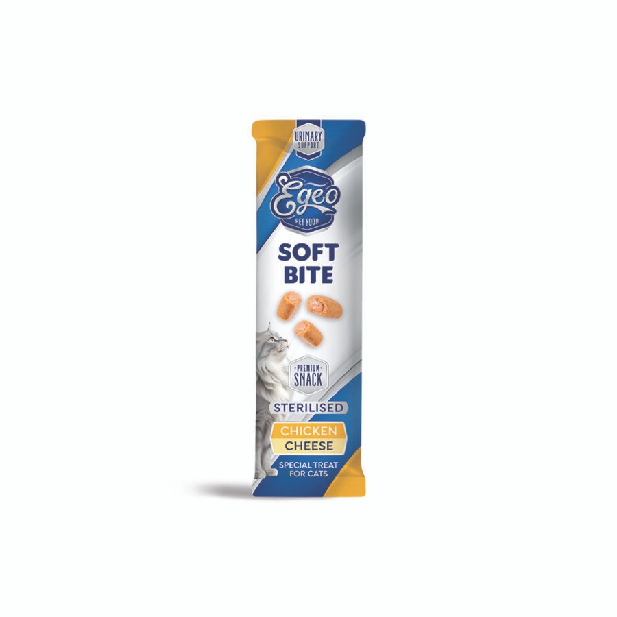 Κάνε κάθε στιγμή της γάτας σου πιο νόστιμη και απολαυστική με τα EGEO Cat Soft Bites Sterilised Κοτόπουλο & Τυρί 10 g – η μαλακή λιχουδιά που θα την κάνει να γουργουρίζει από χαρά!