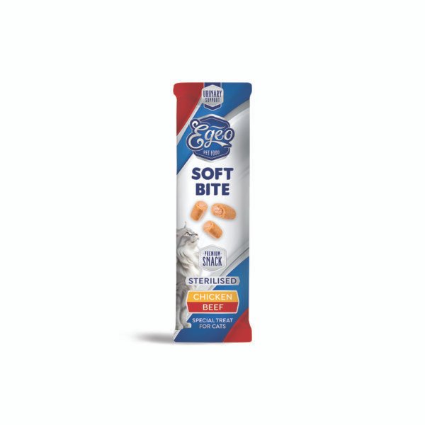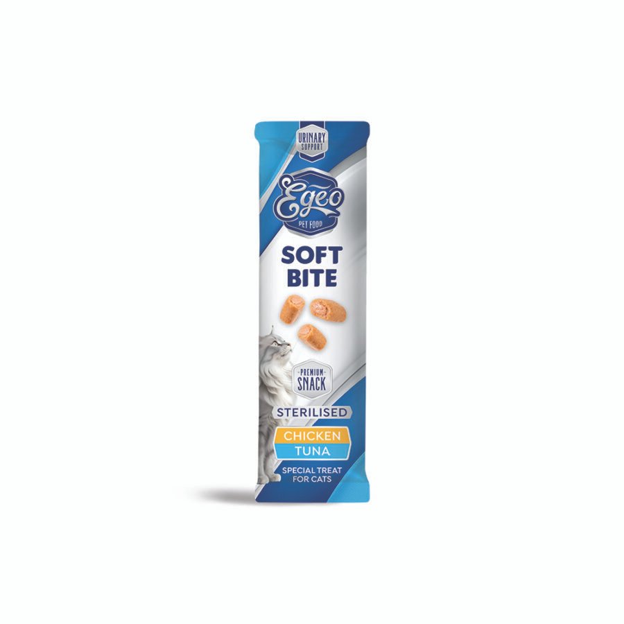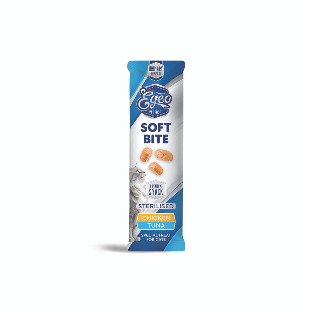 Κάνε κάθε στιγμή της γάτας σου πιο νόστιμη και απολαυστική με τα EGEO Cat Soft Bites Sterilised Κοτόπουλο & Τόνος 10 g – η μαλακή λιχουδιά που θα την κάνει να γουργουρίζει από χαρά!